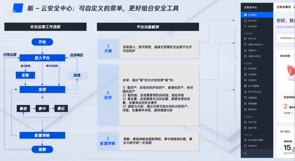 - 通用性。任何一个安全能力脱离于云的基础设施。比如HIDS是要能够在阿里云上用,同时在华为云上用,同时在AWS上用,在所有云上都是通用的,都可以能够实现。
